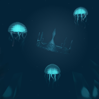 Fallen Crown is a handcrafted royal artifact reimagined beneath the ocean. Lost to time, the crown now drifts silently in the deep, surrounded by luminous jellyfish that replace traditional jewels with living, glass-like light.